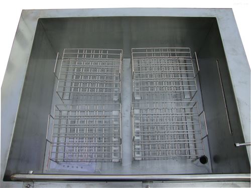 本机采用侧装式大功率超声波换能器,超声波密度高,辐射均匀,清洗罐内带有清洗网篮,便于胶塞的进料、出料。